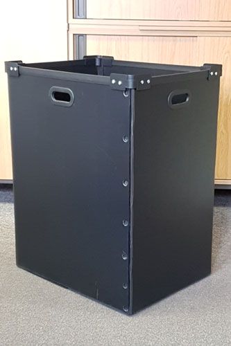Diese Box aus PP-Hohlkammerplatten wurde für eine werksinterne Mülltrennstation entwickelt. Benötigt wurde dafür ein resistentes, belastbares Material, welches zugleich stabil aber auch leicht ist.